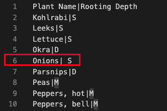 파이프로 구분된 파일인 veggies_root_depth_pipe.txt
