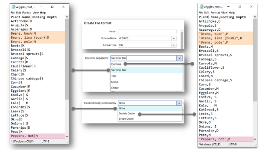ALTER FILE FORMAT "GARDEN_PLANTS"."VEGGIES".COMMASEP_DBLQUOT_ONEHEADROW