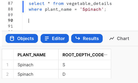 워크시트 컨텍스트를 GARDEN_PLANTS.VEGGIES