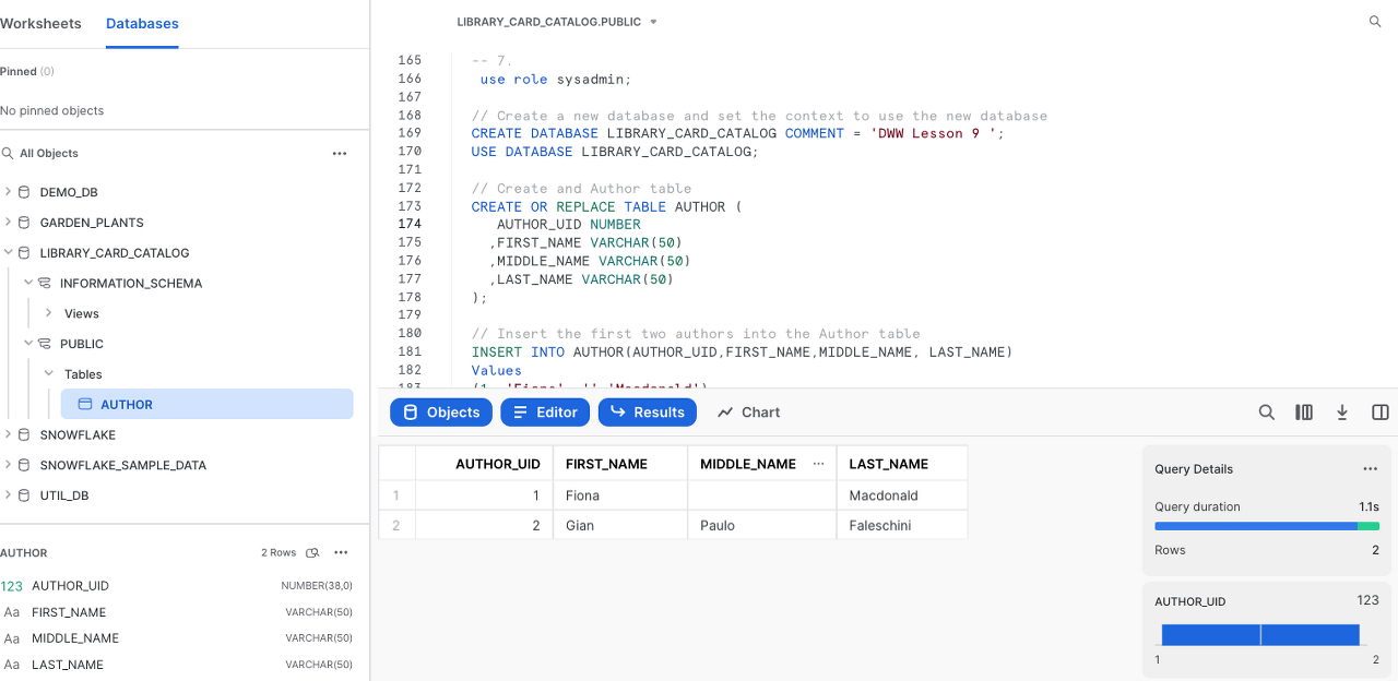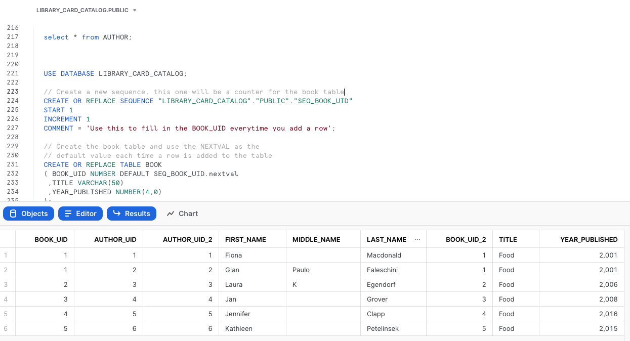 🥋 Create the Library Card Catalog DB, Author Table & a Sequence