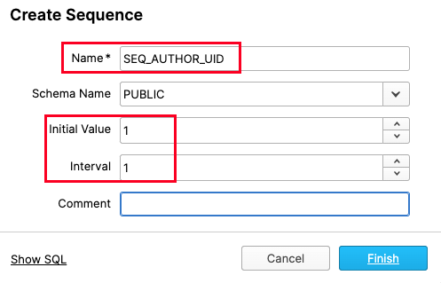 시퀀스를 3으로 시작하게 재설정 후 Author에 행을 추가합니다.