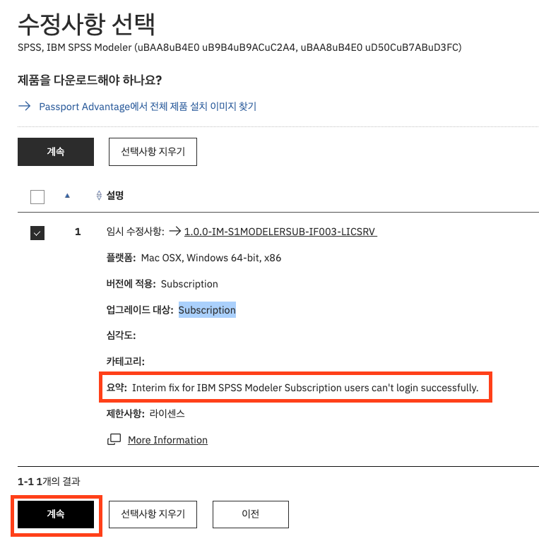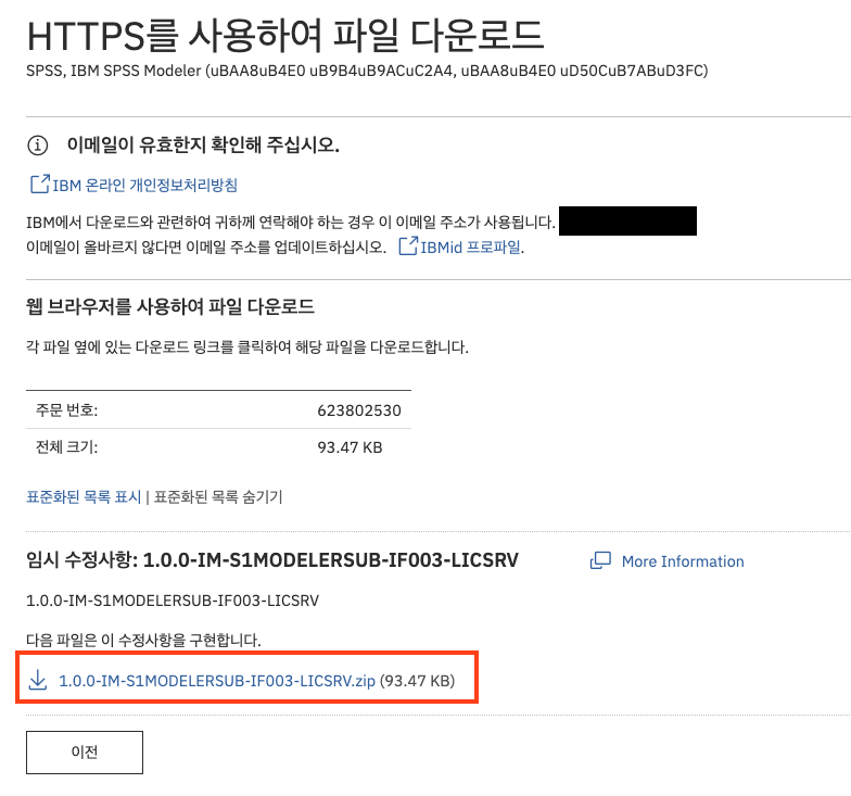 다운로드 버튼을 클릭하면, 1.0.0-IM-S1MODELERSUB-IF002-LICSRV 라는 파일이 로컬에 다운로드되고,