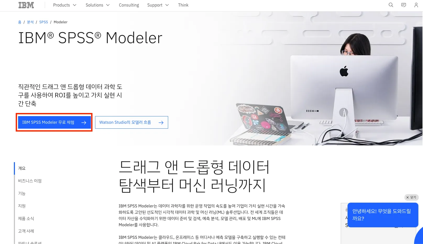 아래 링크를 클릭해 IBM SPSS Modeler 공식 홈페이지로 이동합니다.