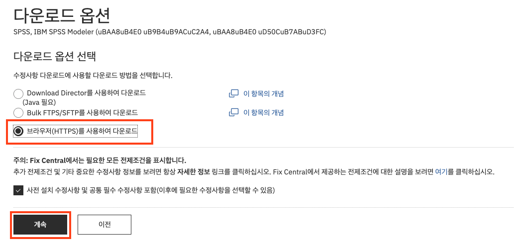 저는 브라우저(HTTPS)를 사용하여 다운로드 버튼 눌러서 진행했습니다.