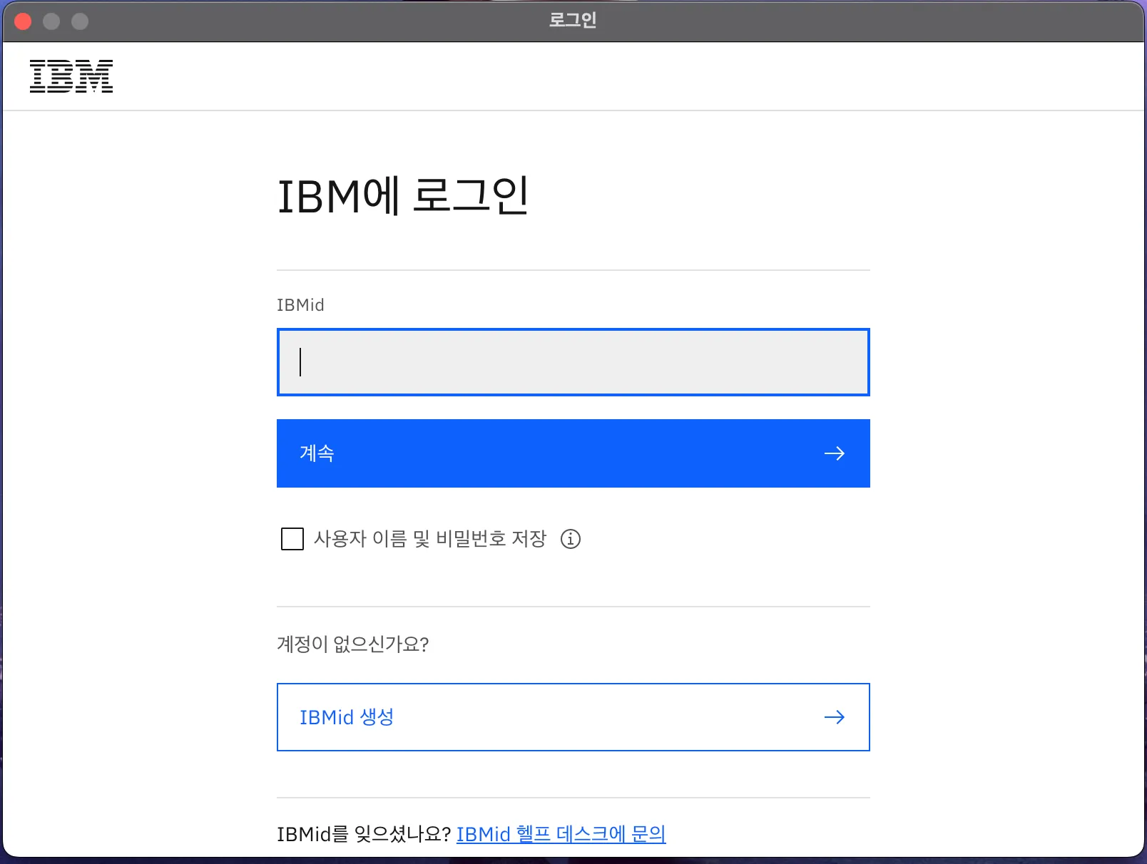 IBM에 회원가입한 계정으로 로그인하시면 됩니다.